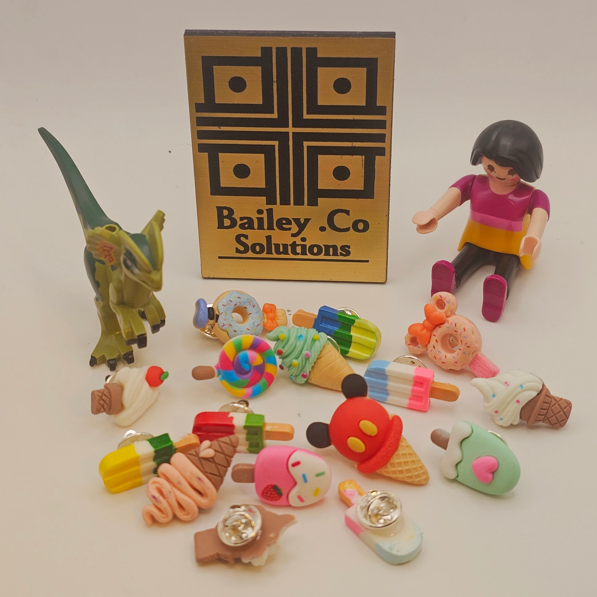 Fun little ice cream theme painted resin badge.