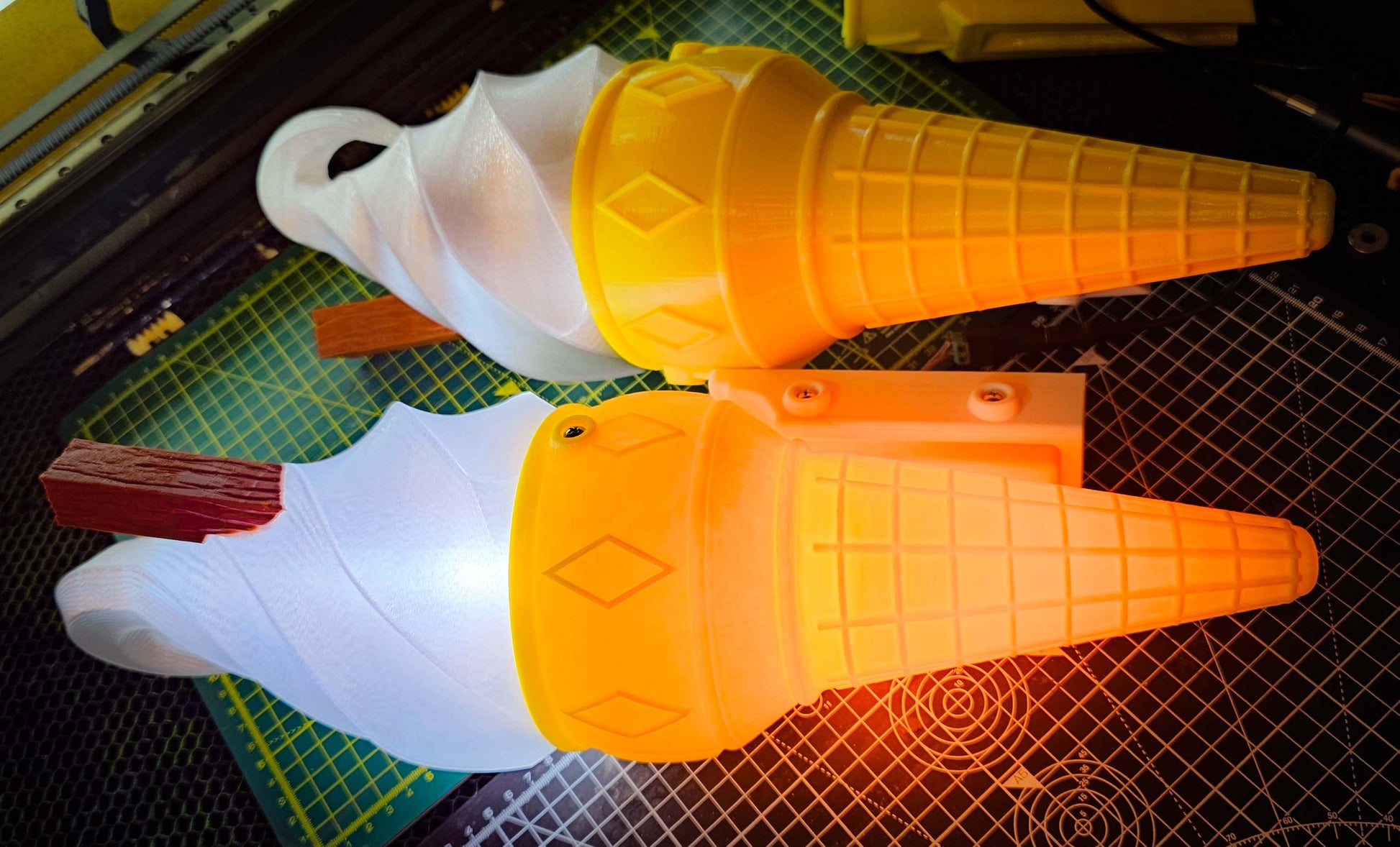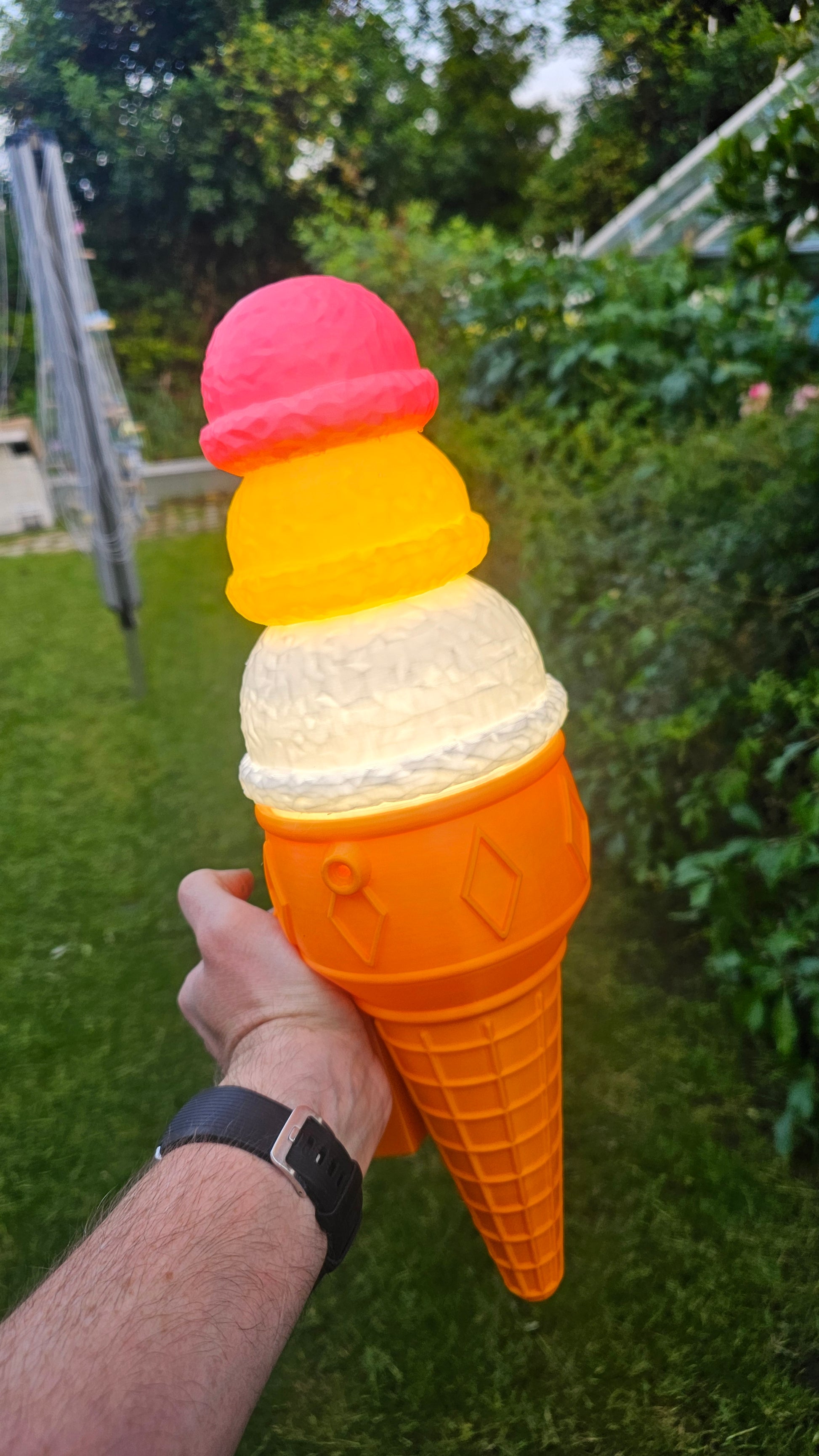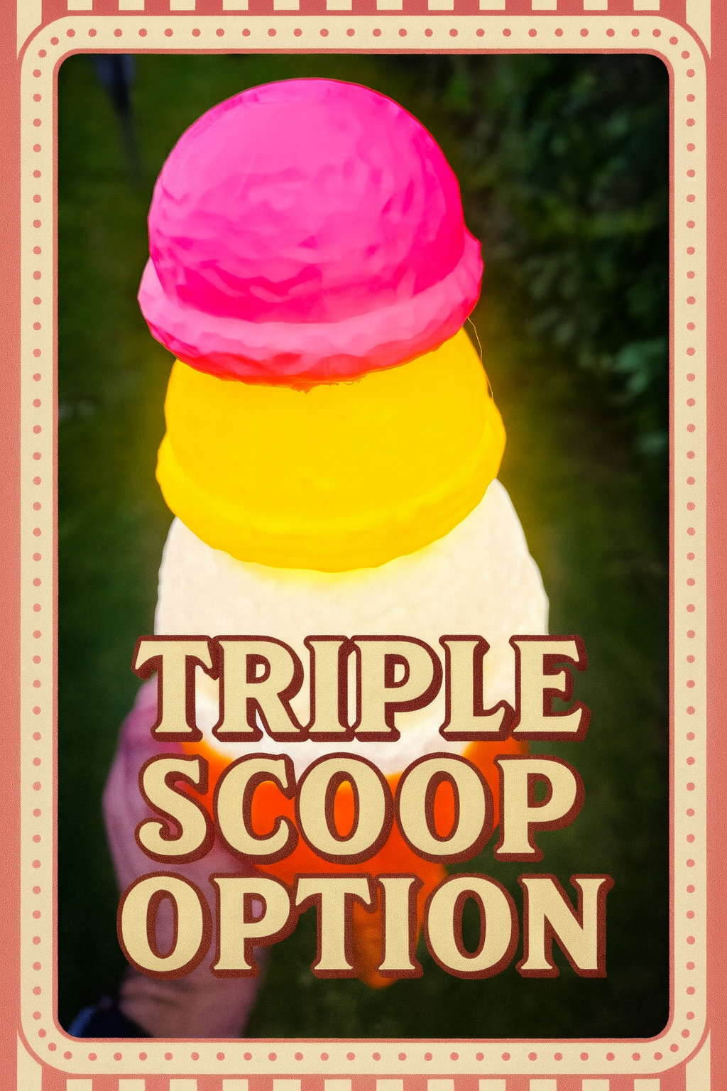 π¦Β Unmatched Custom Options.Β - Choose your cone colour, your ice cream style, and also what kind of bulbs you want - mega bright white or multicoloured that comes with RF remote control so you can set colours, or modes such as strobe or emergency service flashing light effect etc.